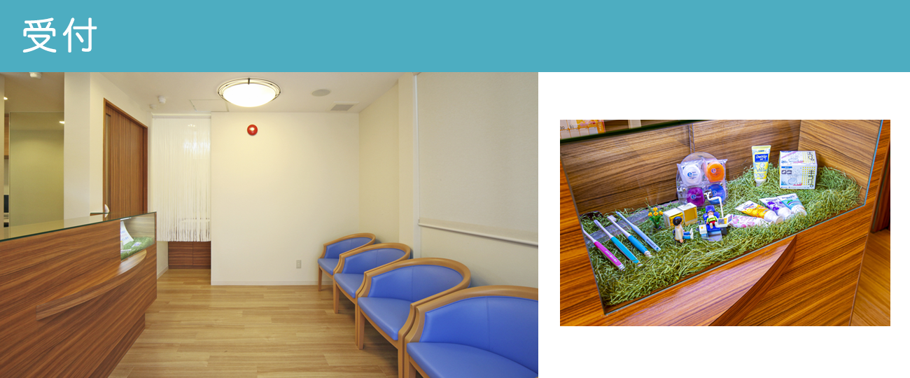 受付では、おすすめの歯ブラシや歯磨き粉、入れ歯洗浄剤を紹介・販売しています。私たちも新しい清掃用品にも興味津々!歯のお手入れについて気になる商品があったら是非教えてください。また、受付横のパウダーコーナーも気軽にご利用ください。