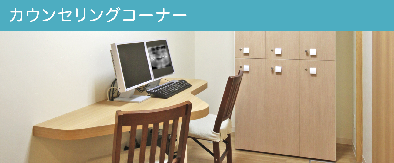 歯の治療には、なぞや不思議がたくさんあるのに、歯医者の診療チェアに座ると、聞きづらくなってしまうとか。こちらのお部屋を是非ご利用ください。レントゲンや治療の解説アニメを見ながら、たくさんお話を聞かせてください。
