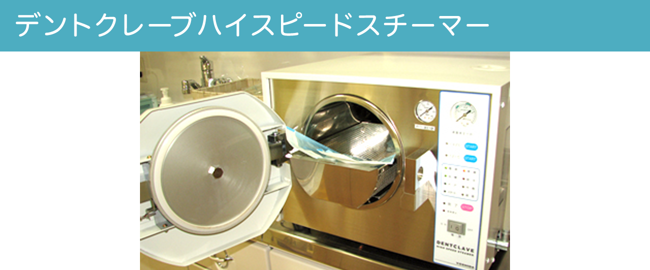 耐熱性のある金属やシリコン器具の滅菌を行う機械です。高圧蒸気の力で、短時間で滅菌できるので、患者様一人ひとりに清潔な器具を提供できます。熱に弱いプラスチックやゴム器具はウィルスもやっつける薬液で滅菌しています。
